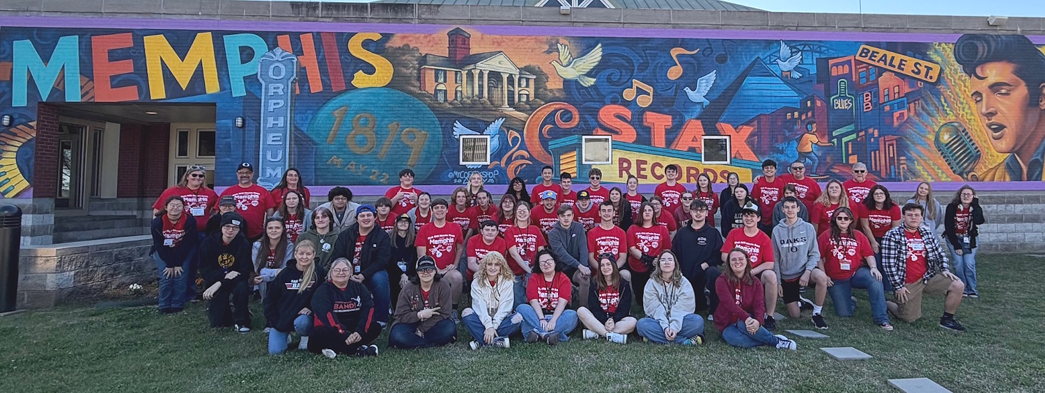 The Oak Hill Band and Choir traveled to Memphis, Tennessee March 26-29th. The Oak Hill Concert Band performed in an adjudicated performance at the University of Memphis, receiving a superior rating. The students saw the sites of Memphis including Elvis’s Graceland, the Memphis Queen riverboat, Sun Studios, Stax Records, the National Civil Rights Museum, and the Bass Pro Shop Pyramid. Click images for larger view.
