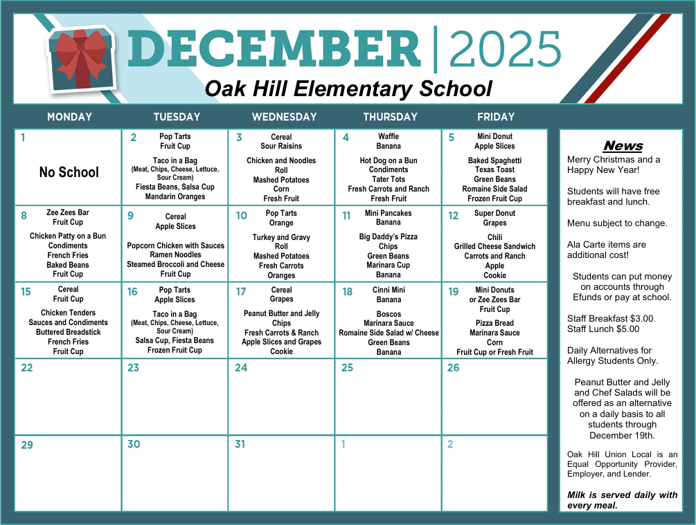 - OHES Menus: December (pdf) or click photo to enlarge and print.