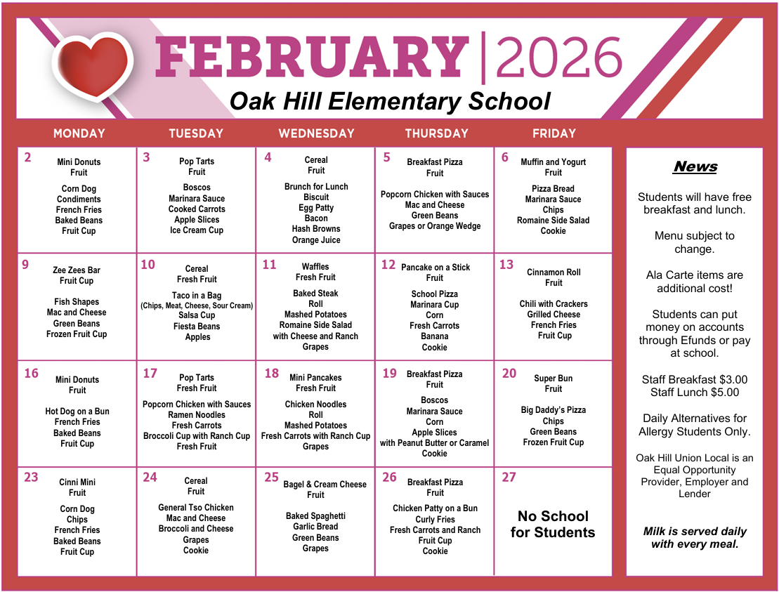 - OHES Menus: February (pdf) or click photo to enlarge and print.