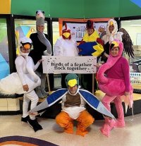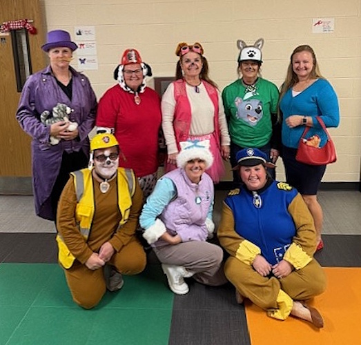 Photos of Oak Hill Elementary staff members during the annual Fall Party on October 31, 2025.