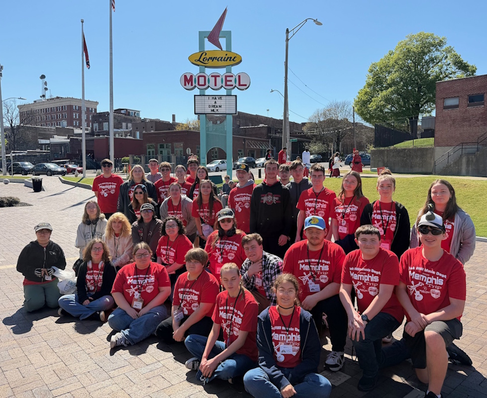 The Oak Hill Band and Choir traveled to Memphis, Tennessee March 26-29th. The Oak Hill Concert Band performed in an adjudicated performance at the University of Memphis, receiving a superior rating. The students saw the sites of Memphis including Elvis’s Graceland, the Memphis Queen riverboat, Sun Studios, Stax Records, the National Civil Rights Museum, and the Bass Pro Shop Pyramid. Click images for larger view.