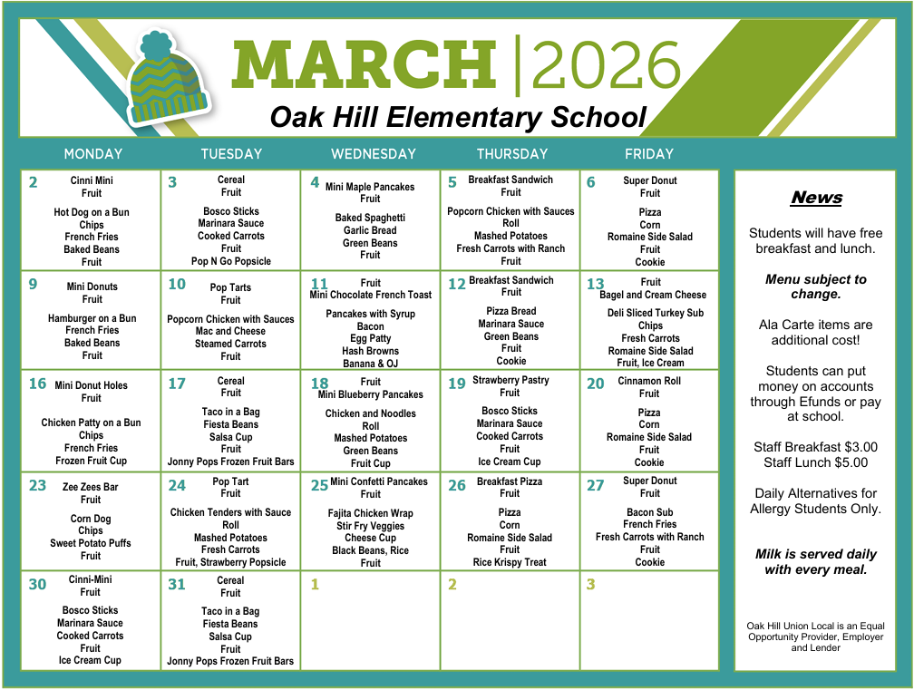 For more information about Oak Hill Union Local School District food services, contact the supervisor.
