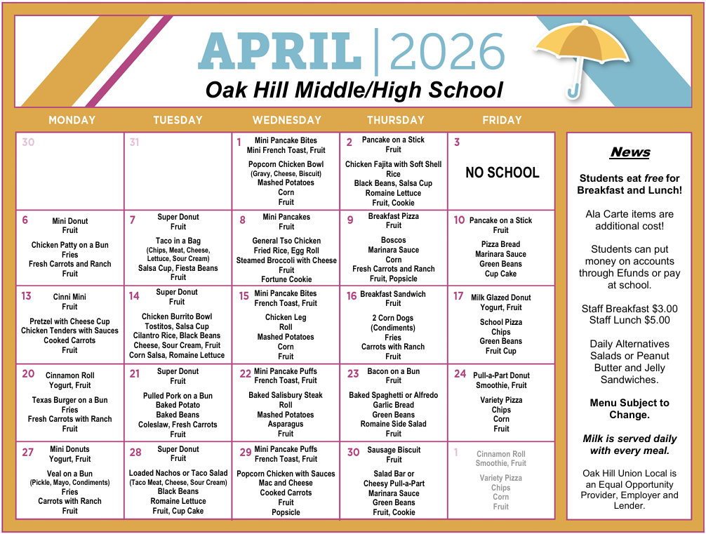 - MS/HS Menus: April, May (pdf) or click photo to enlarge and print