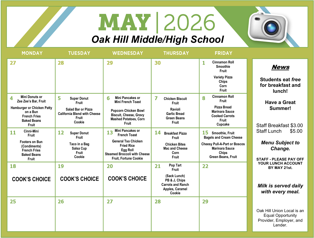 For more information about Oak Hill Union Local School District food services, contact the supervisor.